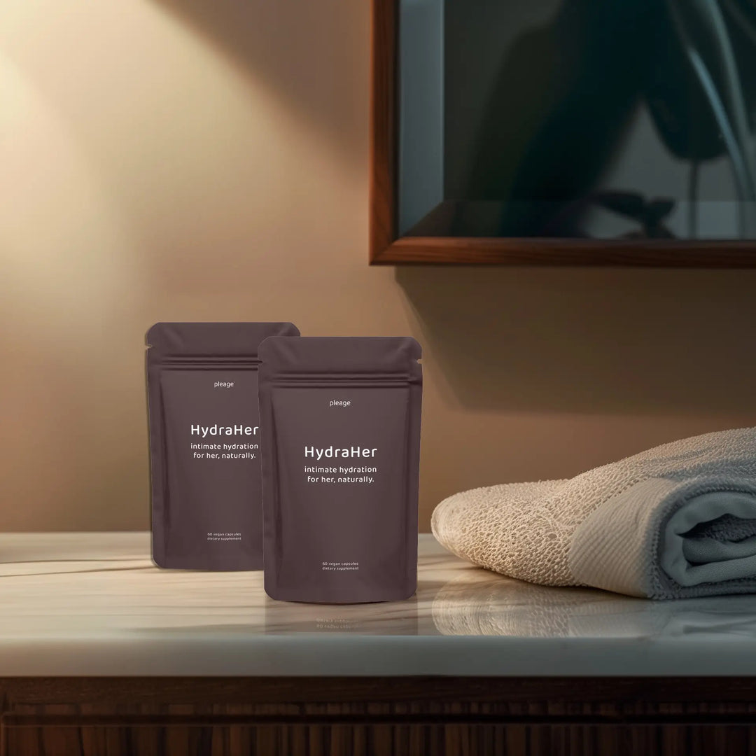 Meet HydraHer – a natural, hormone-free supplement designed to help support intimate hydration and comfort during and after menopause. Formulated with natural ingredients, HydraHer works to promote moisture and enhance overall well-being.